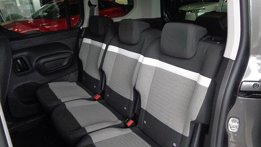 - Asientos traseros de tres plazas de tipo banco partido desmontables de orientación delantera con respaldo abatible asimétrico
