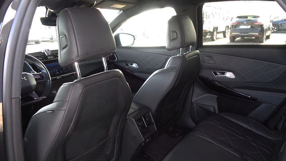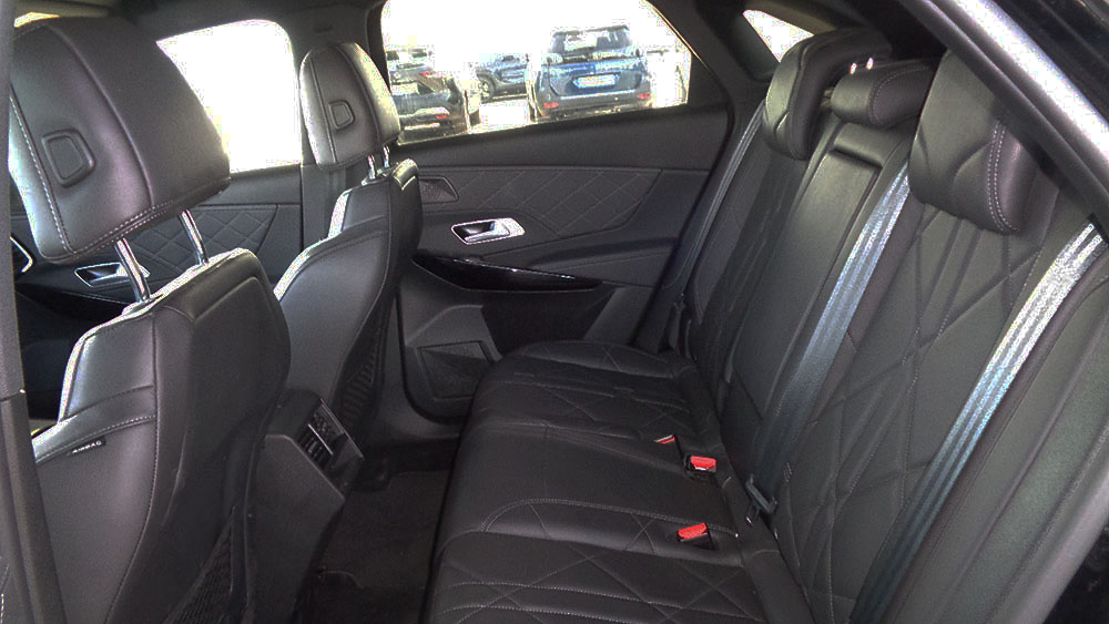 - Asientos traseros de tres plazas de tipo banco partido ajustables eléctricamente ( un ajuste eléctrico ) de orientación delantera con banqueta fija, respaldo abatible asimétrico y ajuste eléctrico del respaldo con plegado remoto