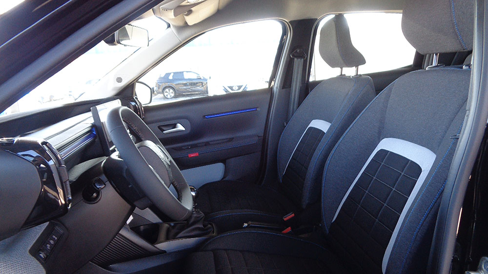 - Asiento delantero del conductor individual, ajuste longitudinal manual y ajuste manual en altura con ajuste manual del respaldo, asiento delantero del acompañante individual y ajuste longitudinal manual con ajuste manual del respaldo