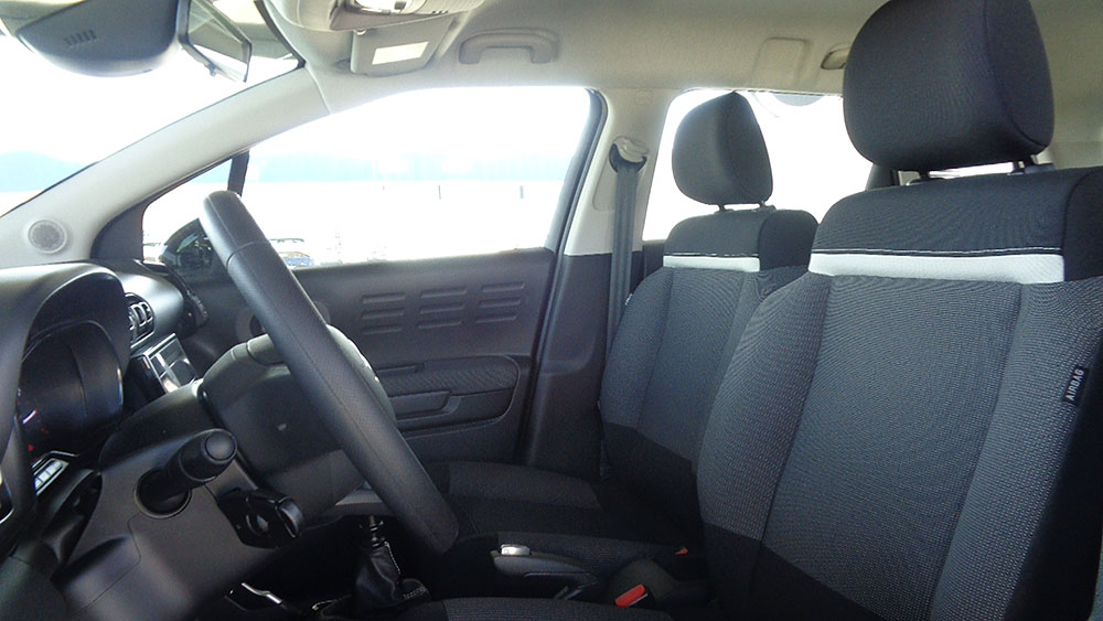 Asiento delantero del conductor individual, ajuste longitudinal manual y ajuste manual en altura ( con mesa en el respaldo del asiento) con ajuste manual del respaldo, asiento delantero del acompañante individual, abatible y ajuste longitudinal manual ( con mesa en el respaldo del asiento) con ajuste manual del respaldo
