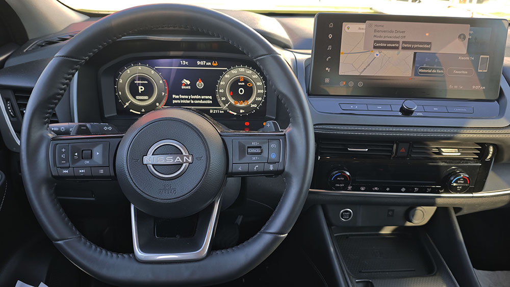 • Volante multi-función de aleación y cuero ajustable en altura y en profundidad